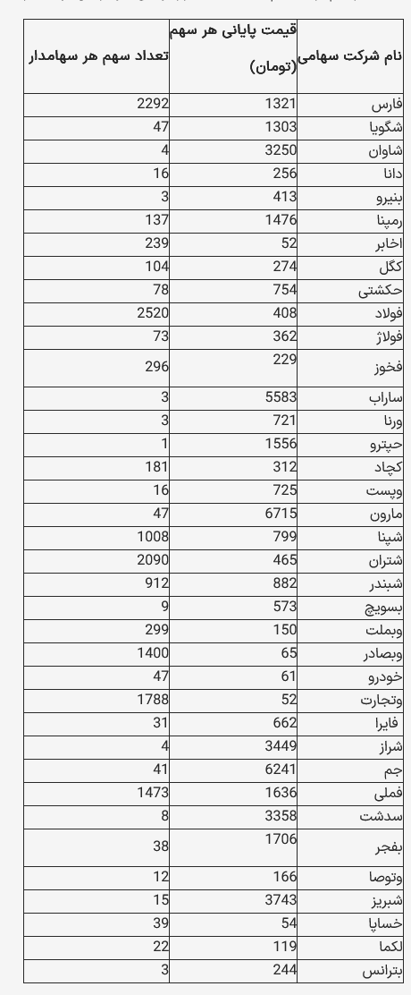 تعداد هرسهم برگه سهام عدالت ۵۳۲ هزار تومانی خود را می توانید در جدول زیر مشاهده کنید.