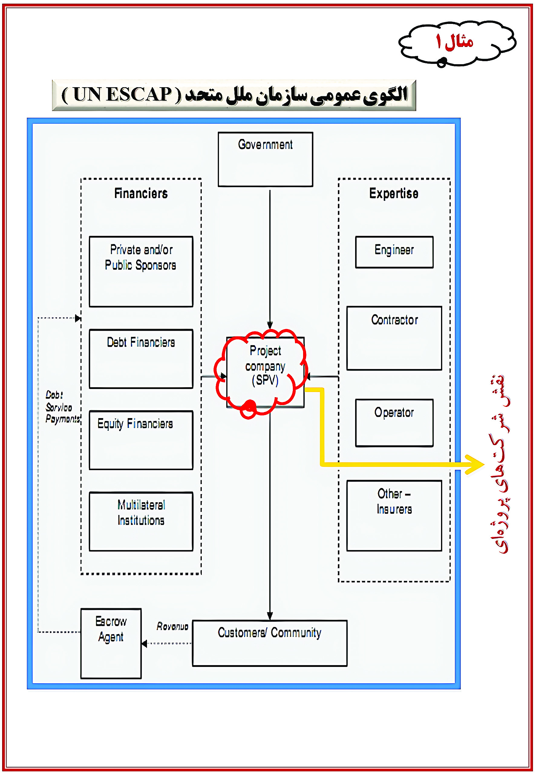 ۱- الگوی UN ESCAP برای اجرای پروژه‌ها با مرکزیت شرکت پروژه‌ای که به دلیل ماهیت مالی به صورت SPV تعریف شده است.