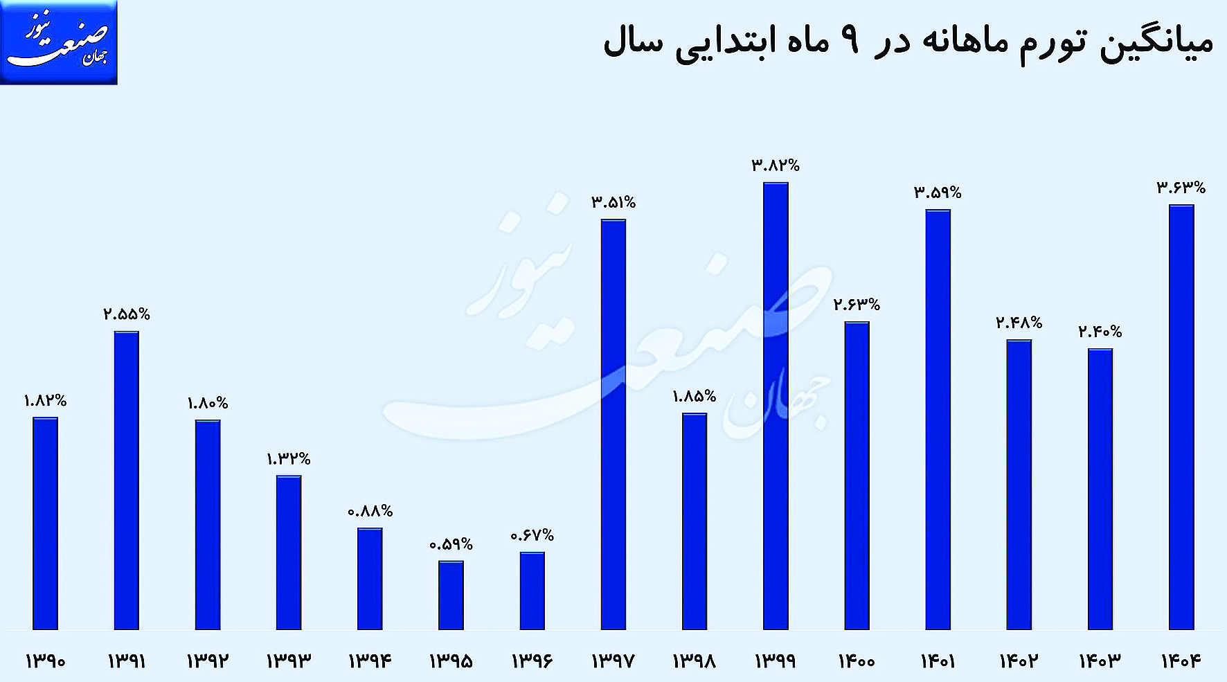 برای درک شدت و ابعاد این روند تورمی باید به مقایسه تاریخی آن توجه کرد. میانگین تورم ماهانه ثبتشده در ۹ ماه ابتدایی در سال۱۴۰۴ بالاترین رقم از سال۱۳۹۹ تاکنون است؛ سالی که اقتصاد ایران درگیر پیامدهای همزمان شوک ارزی، تشدید تحریمها و اختلالات ناشی از همهگیری کرونا بود. تداوم چنین سطحی از تورم ماهانه بهویژه در اقتصادی که رشد درآمد حقیقی خانوارها در آن محدود یا منفی است بهمعنای فرسایش مستمر قدرت خرید و تشدید نااطمینانی اقتصادی است.