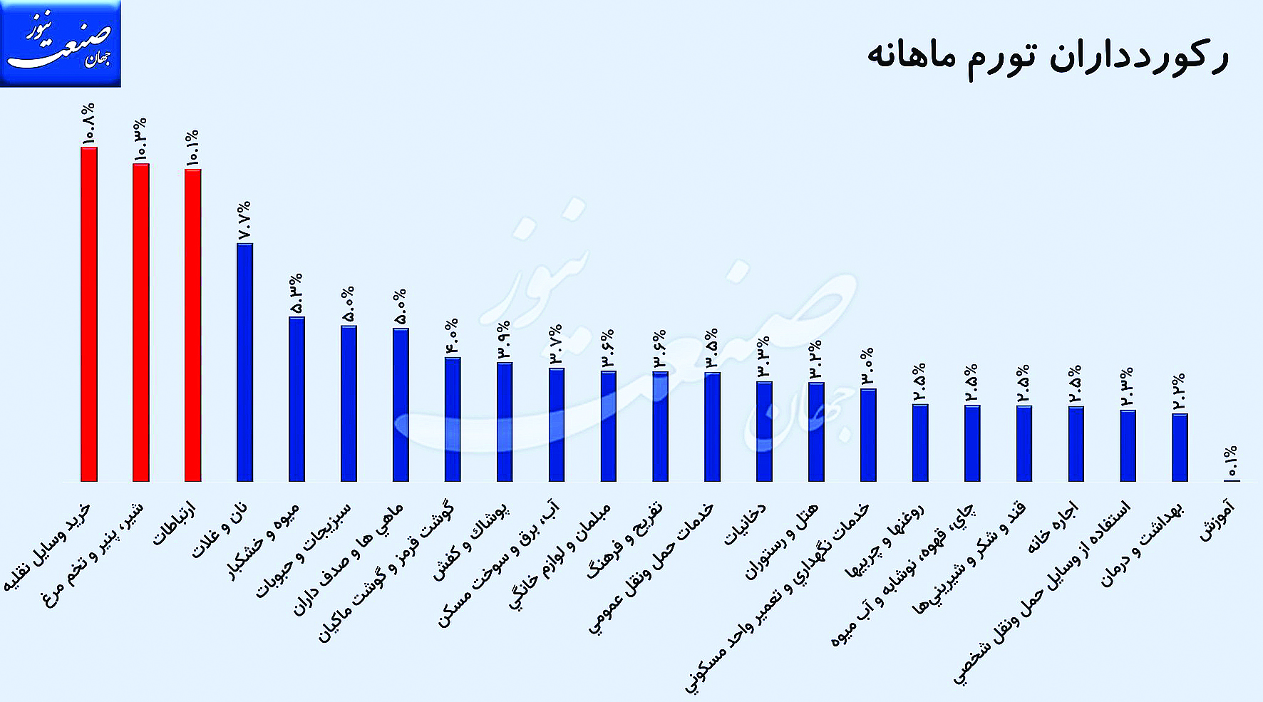ثبت تورم ماهانه دو رقمی در گروههای کالایی منتخب