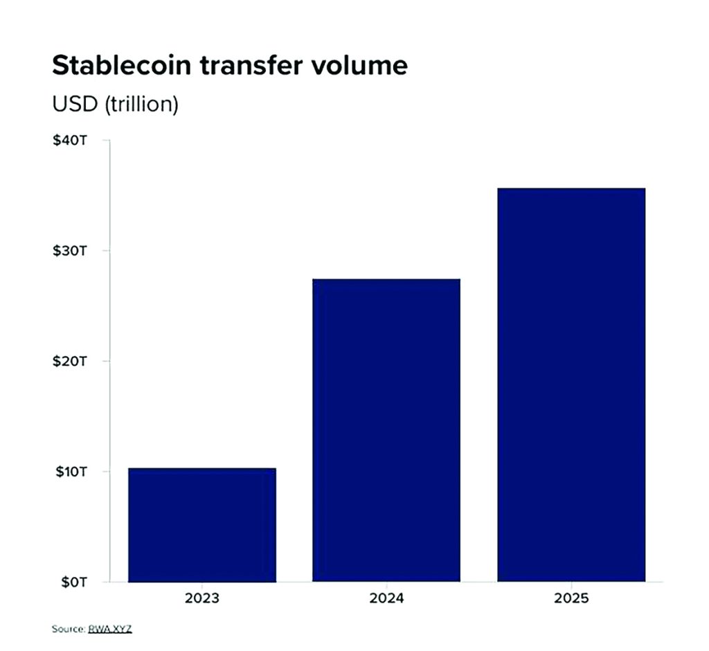 سال۲۰۲۵ شاهد جهش خیرهکننده در استفاده از ابزارهای مالی دیجیتال بود. حجم تراکنشهای استیبلکوینها بهرقم بیسابقه ۳۵تریلیوندلار رسید و ارزش بازار آنها از ۳۰۰میلیارد دلار فراتر رفت. این داراییها بهویژه در مناطقی مانند آفریقای زیرصحرا که شاهد رشد ۵۲درصدی فعالیتهای بلاک چینی بود بهابزاری حیاتی برای حفظ ارزش داراییها و ارسال حوالههای ارزی تبدیل شدند. حجم حوالههای ارزی کارگران مهاجر به۶۹۰میلیارد دلار رسید هرچند هزینههای بالای انتقال و وضع مالیاتهای جدید(مانند مالیات یکدرصدی در آمریکا) چالشهای جدیدی ایجاد کرد.