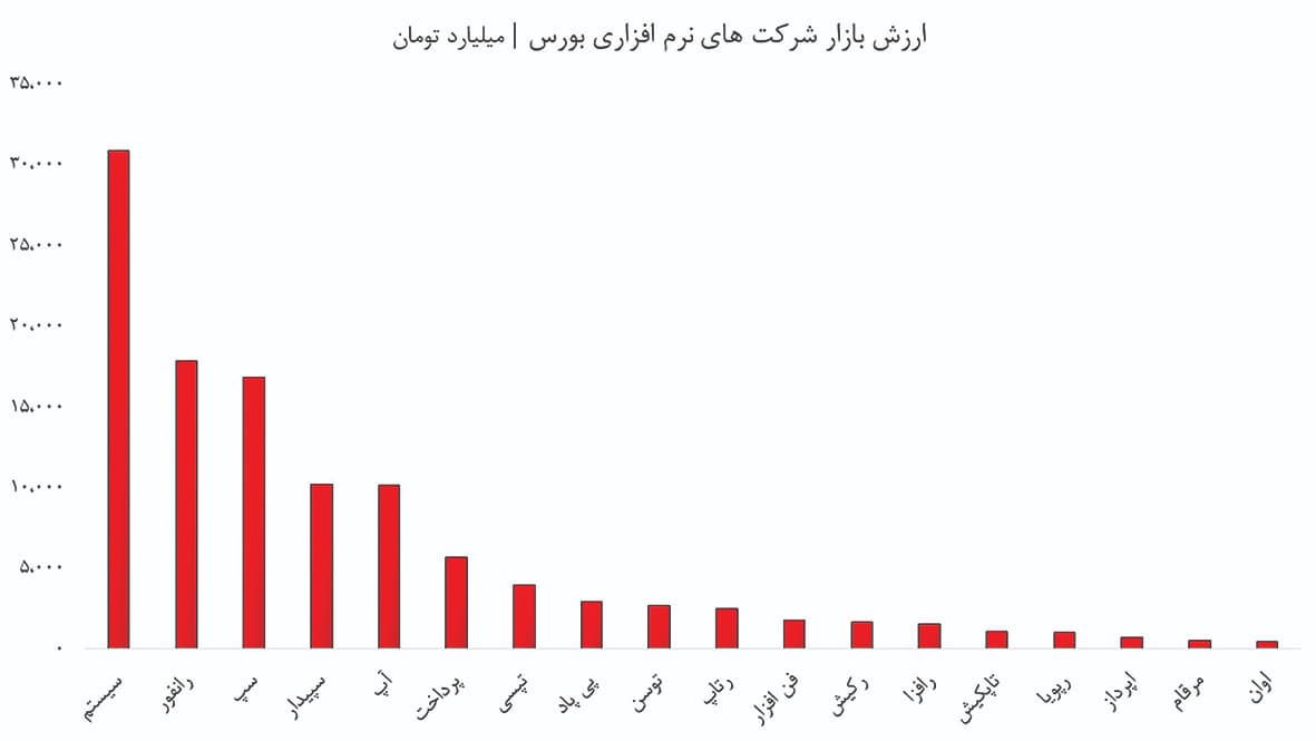 صنعت نرمافزار بورس شامل ۱۸شرکت میشود که جمعا ۴/۱۱۲همت ارزش بازار دارد و سه شرکت همکاران سیستم، خدمات انفورماتیک و پرداخت الکترونیک سامان کیش را میتوان لیدر صنعت در نظر گرفت. همکاران سیستم ۹/۳۰همت، خدمات انفورماتیک ۹/۱۷همت و پرداخت الکترونیک سامان کیش ۸/۱۶همت ارزش بازار بورسی دارند. در مقابل آتیه دادهپرداز ۶۹۲میلیاردتومان، ایران ارقام ۴۹۴میلیارد تومان و مبین وان کیش ۴۶۳میلیاردتومان ارزش بازار دارند که کوچکترین شرکتهای فعال در صنعت نرمافزار بورس محسوب میشوند. ارزش معاملات روزانه گروه رایانه ۱۱۷میلیارد تومان است که نسبت ارزش به تراکنش ۱۸ شرکت را بهصورت میانگین به ۹۵۹واحد میرساند. درواقع این میزان NVT را میتوان مطلوب تلقی کرد بهخصوص در شرایط فعلی اقتصاد و بازار سرمایه کشور!