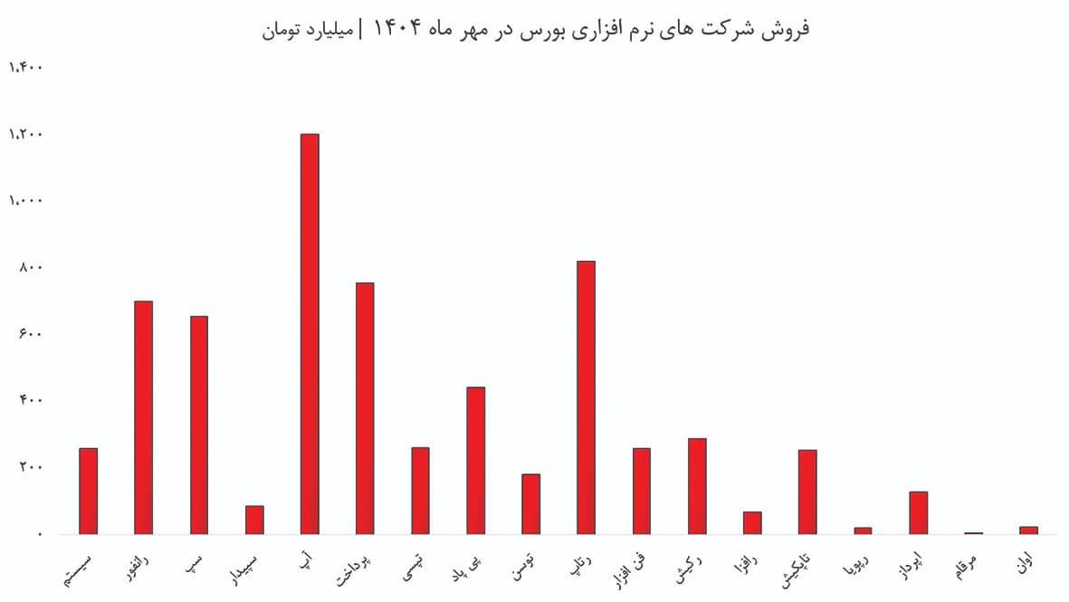شرکت همکاران سیستم ۲۵۸میلیارد تومان، خدمات انفورماتیک ۷۰۰میلیارد تومان، پرداخت الکترونیک سامان کیش ۶۵۵میلیارد تومان، سپیدار سیستم آسیا ۸۵میلیارد تومان، آسانپرداخت پرشین ۱۲۰۲میلیارد تومان، به پرداخت ملت ۷۵۷میلیارد تومان، پیشگامان فناوری و دانش آرامیس ۲۶۲میلیارد تومان، پرداخت الکترونیک بانک پاسارگاد ۴۴۲میلیارد تومان، توسعه سامانههای نرمافزاری نگین ۱۸۱میلیارد تومان، تجارت الکترونیک پارسیان ۸۲۱میلیارد تومان، توسعه فنافزار توسن ۲۶۰میلیارد تومان، کارت اعتباری ایران کیش ۲۹۰میلیاردتومان، رایان همافزا ۶۷میلیارد تومان، تجارت الکترونیک پارسیان کیش ۲۵۵میلیارد تومان، پویا ۲۱میلیارد تومان، آتیه دادهپرداز ۱۲۸میلیارد تومان، ایران ارقام ۶/۴میلیارد تومان و مبین وان کیش ۲۲میلیارد تومان درآمد عملیاتی را در مهر ماه ۱۴۰۴ به ثبت رساندند.