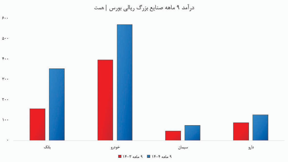 در 9ماهه 1404، صنایع ریالی بورس با وجود تورم و نوسانات ارزی، نشان داده‌اند که می‌توانند نسبت به تورم سبقت گرفته و بانکداری و داروسازی بیشترین بازده را تجربه کنند، هرچند خودرو و سیمان رشدهای کمتری داشته‌اند.