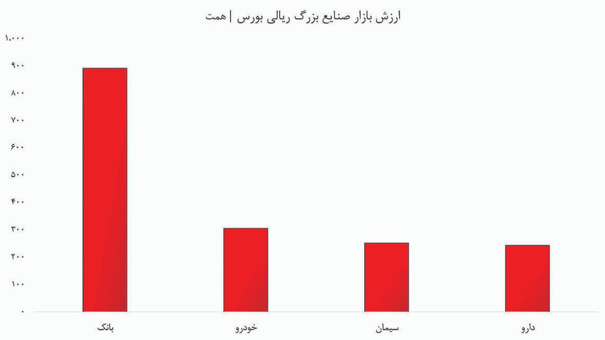 بانک‌ها جمعا با ۸۹۲همت ارزش بازار و ۷/‌۱همت ارزش معاملات روزانه پنجمین‌صنعت بازارسرمایه را تشکیل می‌دهند که می‌توان گفت بزرگ‌ترین شرکت‌های ریالی بورس هستند و ۷/‌۶‌درصد از کل مارکت کپ بازار را به‌خود اختصاص دادند.