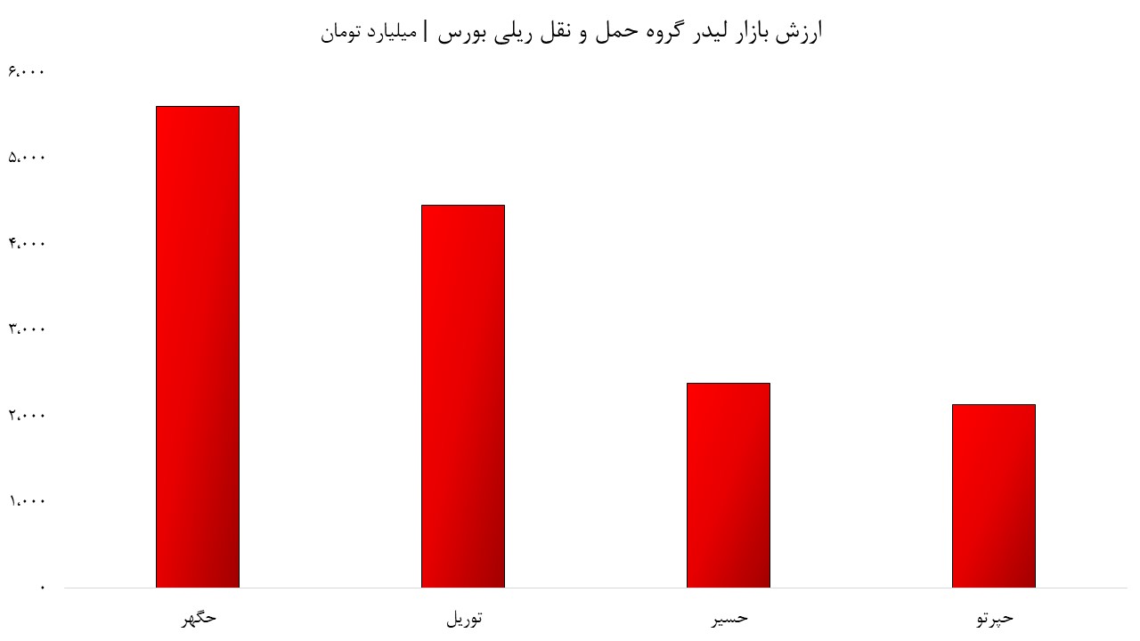 حگهر و توریل بزرگترین سهم‌های حمل‌ونقل ریلی بورس به حساب می‌آیند و سپس دوسهم حسیر و حپرتو ارزش بازار بیشتری نسبت‌به همگروهی‌های خود دارند که این‌چهارسهم جمعا ۱۴.۶ همت ارزش بازار و ۲۲‌میلیارد‌تومان ارزش معاملات روزانه دارند.
