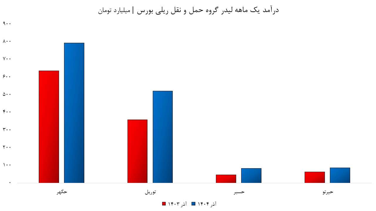 در آذر‌ماه‌۱۴۰۴ شرکت حمل‌ونقل ترکیبی موادمعدنی گهر ترابر سیرجان ۷۹۳‌میلیارد‌تومان، توکا ریل ۵۲۰‌میلیارد‌تومان، ریل سیر کوثر ۸۲‌میلیارد‌تومان و پرتو بار فرابر خلیج‌فارس ۸۶‌‌میلیارد‌تومان درآمد عملیاتی را به‌ثبت رساندند. ریل سیر کوثر ۷۴درصد، توکا ریل ۴۵‌درصد، پرتو بار فرابر خلیج‌فارس ۳۷‌درصد و حمل‌ونقل ترکیبی موادمعدنی گهر ترابر سیرجان ۲۵‌درصد رشد درآمد را نسبت‌به دوره مشابه سال قبل تجربه کردند.