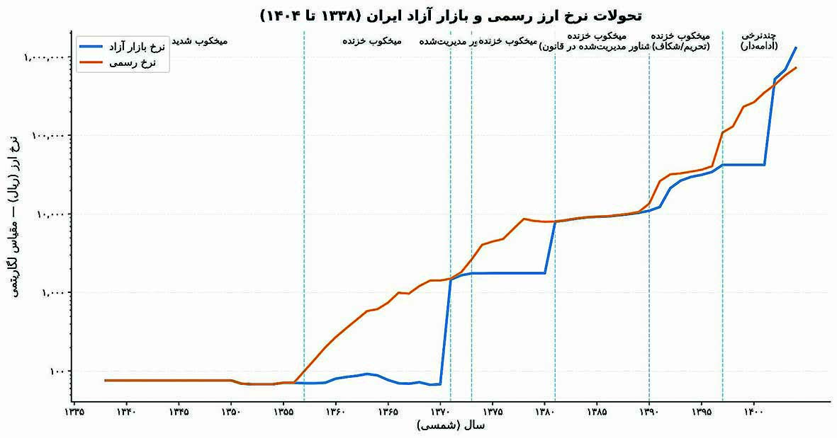 سیاست‌های ارزی ناکارآمد ایران از ثبات نفتی دهه ۵۰ تا چندنرخی انفجاری امروز، ریال را به تدریج بی‌ارزش کرده است.