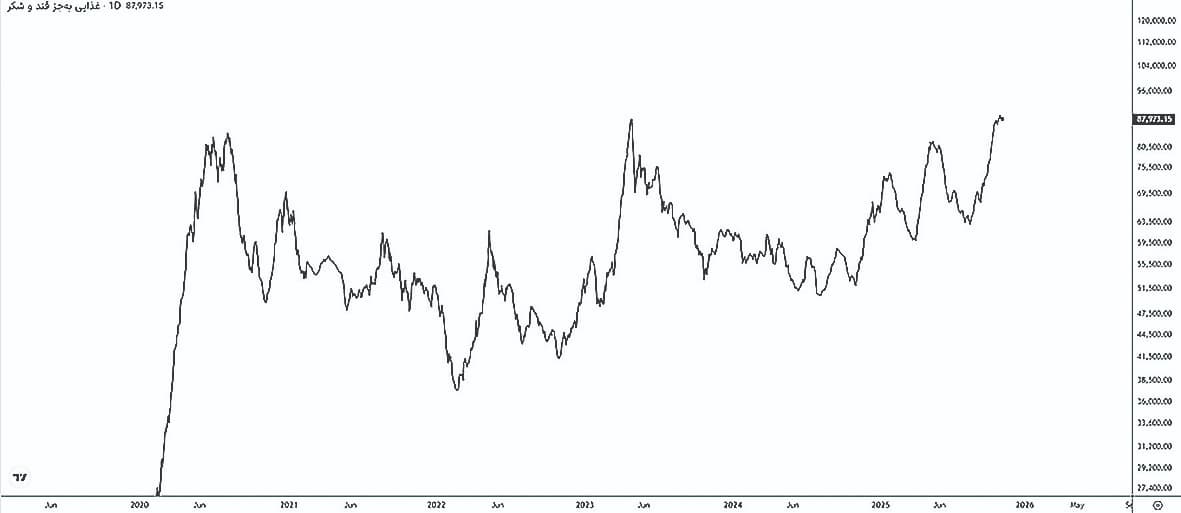 شاخص گروه غذایی بورس طی یکماه اخیر به میزان ۳/۱۵+درصد افزایش یافته و از محدوده ۷۶هزارو۲۴۴واحد به ۸۷هزارو۹۷۳واحد رسیده که میتوان چنین برداشت کرد که سهام شرکتهای غذایی بورس به انتظارات تورمی و گرانی اجناس و کالاها واکنش مثبت نشان دادند. شاخص طی یکسال اخیر ۶۴+درصد و طی سهسال اخیر ۱۰۶+درصد رشد کرده است. اگر بخواهیم از دورنما به چارت نگاه کنیم همانطور که شاخص صنعت غذایی در فروردینماه۱۴۰۱ مقاومت داینامیک ماژور خود را شکست و پس از آن ۷۷درصد افزایش یافت در شهریورماه۱۴۰۳ نیز مقاومت سنگینی شکسته شد و شاخص پرواز کرد اما اکنون درگیر سقف تاریخی (ATH) است که با رشد بیش از ۲۰درصدی قیمت سهام شرکتهای غذایی شاخص نیز از سقف عبور خواهد کرد و به اهداف بالاتری خواهد رسید.