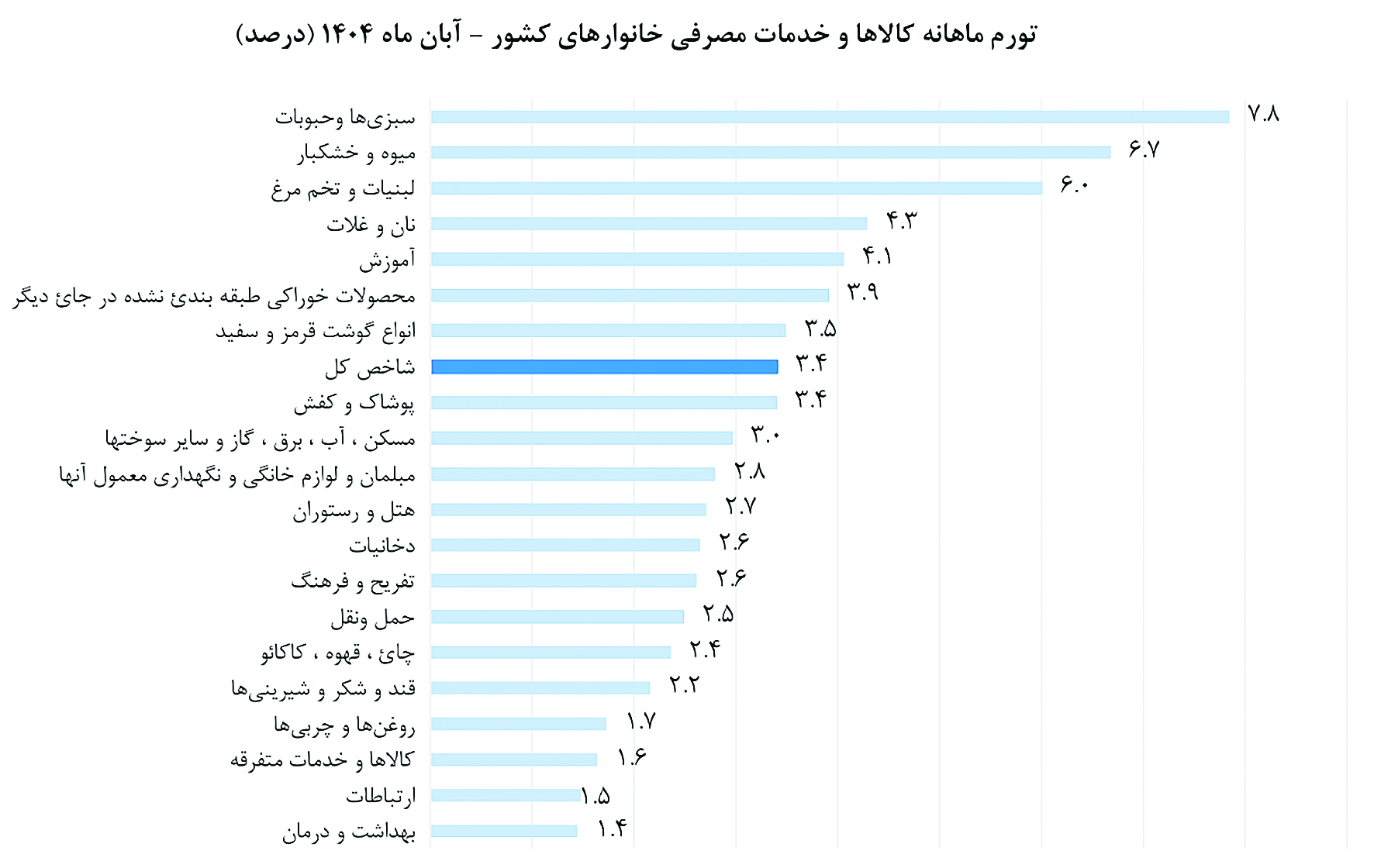 اجارهبها بزرگترین بخش از هزینه خانوار شهری، در آبان ۷/۲درصد افزایش یافت و روند افزایشی پنجماهه اخیر را ادامه داد؛ روندی که از خرداد با تورم ماهانه ۲/۲درصد آغاز شد، در تیر به ۴/۲درصد رسید، در مرداد و شهریور بهترتیب ۵/۲ و ۰/۳درصد ثبت شد و در مهر نیز ۷/۲درصد بالا رفت و در آبان نیز به بالای ۳درصد رسید. با توجه به اینکه اجارهبها ۶/۳۳درصد از شاخص کل را تشکیل میدهد، تثبیت این ارقام نشان میدهد فشار مسکن به یک عامل پایدار تورمی تبدیل شده است و حتی در دوران رکود معاملات نیز کاهش نمییابد. در کنار این رفتار، بازار انرژی نیز در آبان دچار جهشی قابلتوجه شد: گروه «آب، برق و سوخت» رشد ۹/۶درصدی را تجربه کرد؛ رقمی که در ششماهه نخست سال معمولا بین یک تا ۲درصد نوسان داشت. این افزایش شدید علاوهبر اینکه مستقیما هزینه خانوار را بالا میبرد، از کانالهای دیگر نیز تورمزاست: افزایش هزینه حملونقل بار، رشد قیمت توزیع کالاهای خوراکی، و فشار بر خدمات شهری و بینشهری. ترکیب این دو مولفه- افزایش پایدار اجاره و جهش ناگهانی انرژی- در واقع ساختاریترین فشار ممکن را بر معیشت خانوار ایجاد میکند؛ فشاری که نهتنها در آبان بلکه در ماههای آینده نیز آثار خود را در شاخص قیمت مصرفکننده نشان خواهد داد.