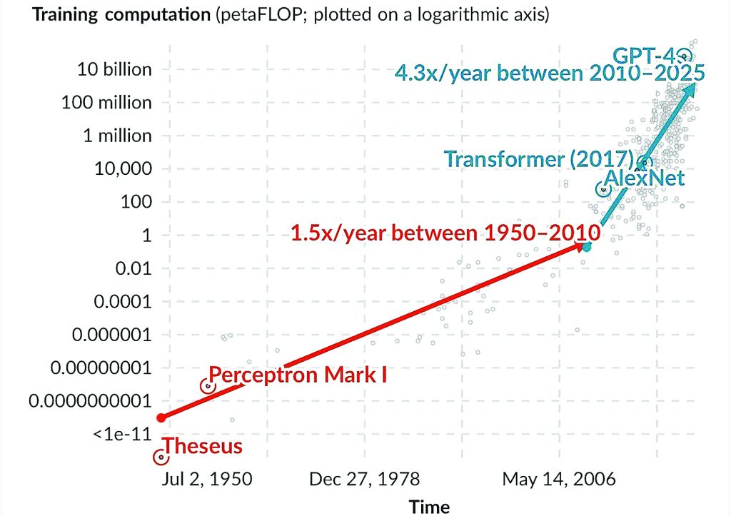 نمودار ۳. رشد نمایی مقدار محاسبات در آموزش سیستمهای مهم هوشمصنوعی