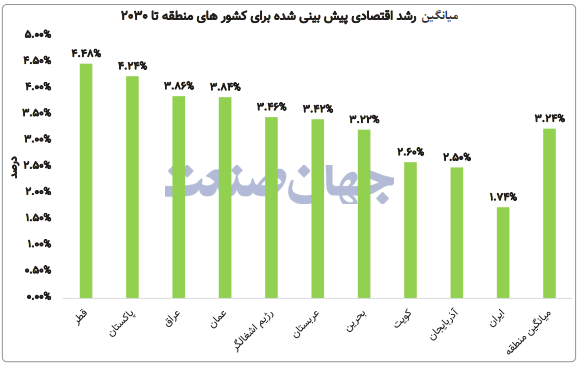 پاکستان نیز با وجود قرار گرفتن در رتبه دوم دهه اخیر ۴/۳درصد، در دورههای کوتاهتر مانند (۲۰۲۱ تا ۲۰۲۵) با میانگین ۴/۳درصد در میانه جدول ایستاده است. به بیان دیگر هیچکدام از این دو کشور در سالهای اخیر «قهرمان رشد» نبودهاند اما این تصویر در پیشبینیها بهطور کامل تغییر میکند. IMF برآورد میکند که قطر در دوره ۲۰۲۶ تا ۲۰۳۰ با میانگین رشد ۴۸/۴درصدی در صدر منطقه قرار گیرد؛ نرخی که بهطور قابلتوجهی بالاتر از میانگین منطقه ۲۴/۳درصد است. این جهش عمدتا به افزایش ظرفیت تولید و صادرات گاز طبیعی مایع LNG بازمیگردد؛ عاملی که در شرایط بیثباتی بازار انرژی به یک مزیت استراتژیک تبدیل شده است. بهویژه در سالهای۲۰۲۶ ۱/۶درصد و ۲۰۲۷ ۸/۷درصد، رشد قطر به سطوحی میرسد که آن را از سایر اقتصادهای منطقه متمایز میکند. پاکستان نیز با میانگین پیشبینیشده ۲۴/۴درصدی در رتبه دوم آینده قرار میگیرد؛ بالاتر از اقتصادهایی مانند عربستان ۴۲/۳درصد و اسرائیل ۴۶/۳درصد. این در حالی است که اقتصاد پاکستان در سالهای گذشته با چالشهایی چون بدهی بالا، کسری تراز پرداختها و بیثباتی سیاسی مواجه بوده است. به همین دلیل رشد بالای پیشبینیشده برای این کشور بیش از سایر اقتصادها به تحقق اصلاحات ساختاری و ثبات سیاستی وابسته است. آنچه این دو کشور را در کنار هم قرار میدهد، یک ویژگی مشترک است: هر دو در حال ورود به فاز جدیدی از رشد هستند که کمتر به نوسانات کوتاهمدت و بیشتر به ظرفیتهای در حال توسعه وابسته است. قطر با تکیه بر گاز و سرمایهگذاری در انرژی و پاکستان با اتکا به پتانسیل جمعیتی و بازسازی اقتصادی، در حال تغییر جایگاه خود در نقشه رشد منطقه هستند. در چنین شرایطی دادهها یک پیام روشن دارند: آینده خاورمیانه الزاما ادامه گذشته آن نیست. بازیگران جدیدی در حال صعودند و اگر این روند تثبیت شود، «ستارههای فردا» میتوانند به سرعت جایگزین قهرمانان امروز شوند.